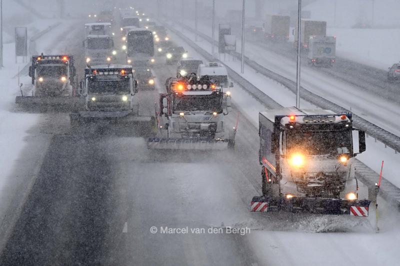 7-1-2026, Nederland, Zaltbommel winter en veel sneeuw in Nederland Gladheidsbestrijders op de A2 foto Marcel van den Bergh (niet voor Trouw, Parool, AD en NRC)