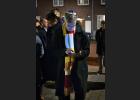 16-12-2025, Nederland, Den Bosch Joden vieren Chanoeka voor de oude synagoge. Een man met Oeteldonk sjaal is 1 van de aanwezigen. foto Marcel van den Bergh (niet voor Trouw, Parool, AD en NRC)