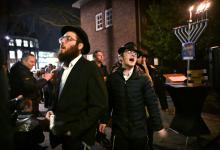16-12-2025, Nederland, Den Bosch Joden vieren Chanoeka voor de oude synagoge. foto Marcel van den Bergh (niet voor Trouw, Parool, AD en NRC)
