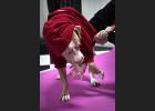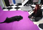 VRIJ 10-12-2025, Nederland, Oud-Beijerland Hondenfotograaf Kimberley van Motherpuppers Studio aan het werk. Ze doet haar eigen hond een pak aan voor een shoot. foto Marcel van den Bergh (niet voor Trouw, Parool, AD en NRC)