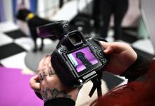 VRIJ 10-12-2025, Nederland, Oud-Beijerland Hondenfotograaf Kimberley van Motherpuppers Studio aan het werk. Klanten kunnen aan een rad draaien en zo een extra prijs winnen. foto Marcel van den Bergh (niet voor Trouw, Parool, AD en NRC)