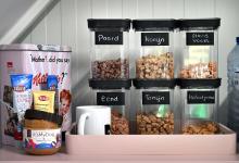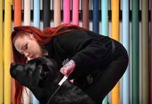 VRIJ 10-12-2025, Nederland, Oud-Beijerland Hondenfotograaf Kimberley van Motherpuppers Studio aan het werk. Hondenbrokjes met verschillende smaken staan klaar om de honden gunstig te stemmen. foto Marcel van den Bergh (niet voor Trouw, Parool, AD en NRC)