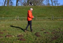 7-2-2026, Nederland, Dreumel Joost Klaver telt molshopen in het weilandje achter zijn huis. Hij doet mee aan de jaarlijkse mollentelling georganiseerd door de Zoogdierenvereniging dit weekend. (niet voor Trouw, Parool, AD en NRC)