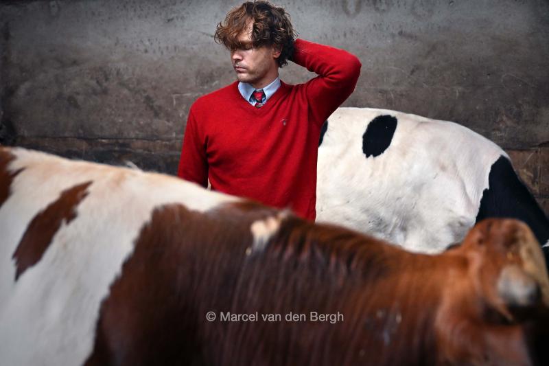 veganist Wouter Waayer tussen zijn stierkalveren