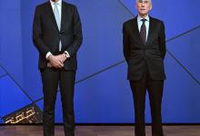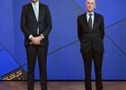 28-1-2026, Nederland, Eindhoven, Veldhoven ASML maakt jaarcijfers bekend. CEO Christophe Fouquet en financieel directeur Roger Dassen (met bril) tijdens de persconferentie. (niet voor Trouw, Parool, AD en NRC)