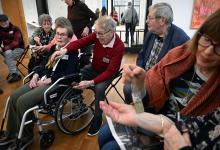 30-1-2026, Nederland, Den Haag Kunstconnectie In Kunstmuseum Den Haag krijgen mensen met dementie en hun mantelzorgers een rondleiding op een dementievriendelijke manier. Daarbij krijgen ze kleine opdrachtjes. Zo maakten ze met een bolletje klei een kleine sculptuur. (niet voor Trouw, Parool, AD en NRC)
