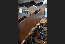 3-2-2026, Nederland, Den Haag De nieuwe universiteitscampus Spui in het oude V&D pand. Het trappenhuis. (niet voor Trouw, Parool, AD en NRC)