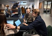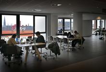 3-2-2026, Nederland, Den Haag Studenten in de nieuwe universiteitscampus Spui in het oude V&D pand. (niet voor Trouw, Parool, AD en NRC)