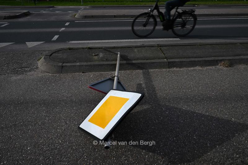 VRIJ 26-2-2024, Nederland, Velddriel gehavend verkeersmeubilair foto Marcel van den Bergh (niet voor Trouw, Parool, AD en NRC)
