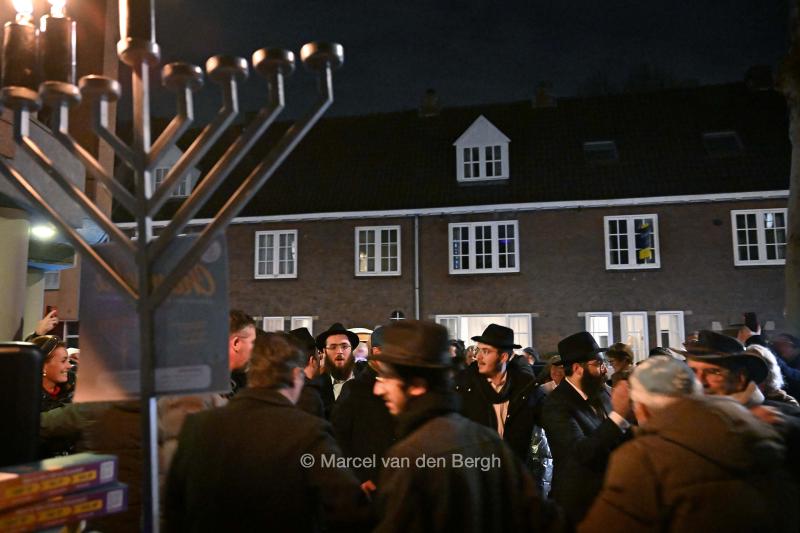 16-12-2025, Nederland, Den Bosch Joden vieren Chanoeka voor de oude synagoge. foto Marcel van den Bergh (niet voor Trouw, Parool, AD en NRC)