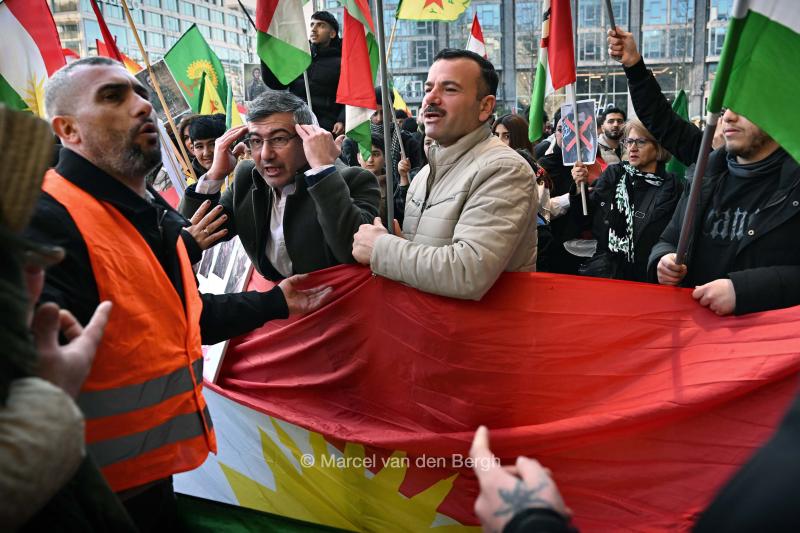 18-1-2026, Nederland, Rotterdam Koerden demonstreren in Rotterdam nav hun situatie in Iran en Syrië. De ordedienst probeert demonstranten op afstand te houden. foto Marcel van den Bergh (niet voor Trouw, Parool, AD en NRC)