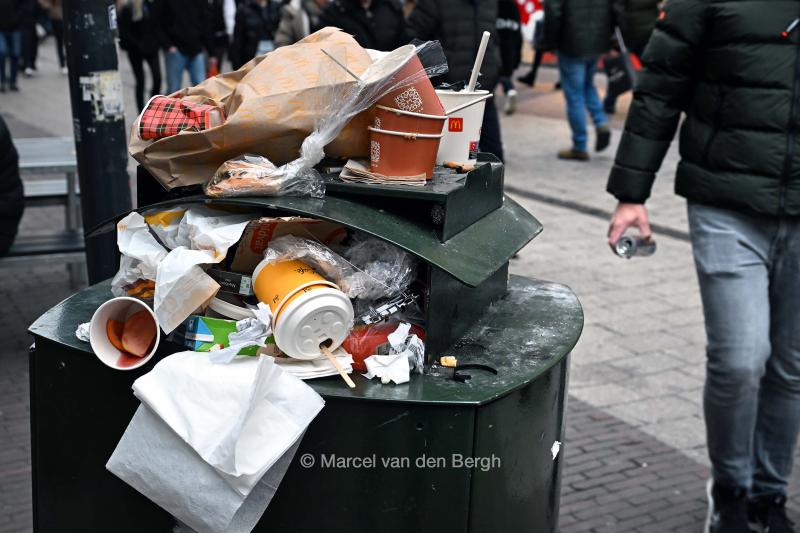 VRIJ 14-12-2025, Nederland, Arnhem overvolle afvalbak foto Marcel van den Bergh (niet voor Trouw, Parool, AD en NRC)