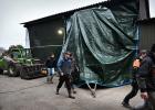 VRIJ 27-12-2025, Nederland, Maasbommel carnaval voorbereidingen carnaval In een boerenschuur bouwen jongeren aan een carnavalswagen. De wagen is te groot voor de schuur en komt eronder uit. foto Marcel van den Bergh (niet voor Trouw, Parool, AD en NRC)