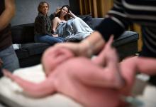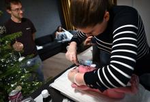 VRIJ 23-12-2025, Nederland, Rossum geboorte baby thuis Moeder en oma bekijken hoe de verloskundige het babytje onderzoekt. (vrij gebruik) foto Marcel van den Bergh (niet voor Trouw, Parool, AD en NRC)